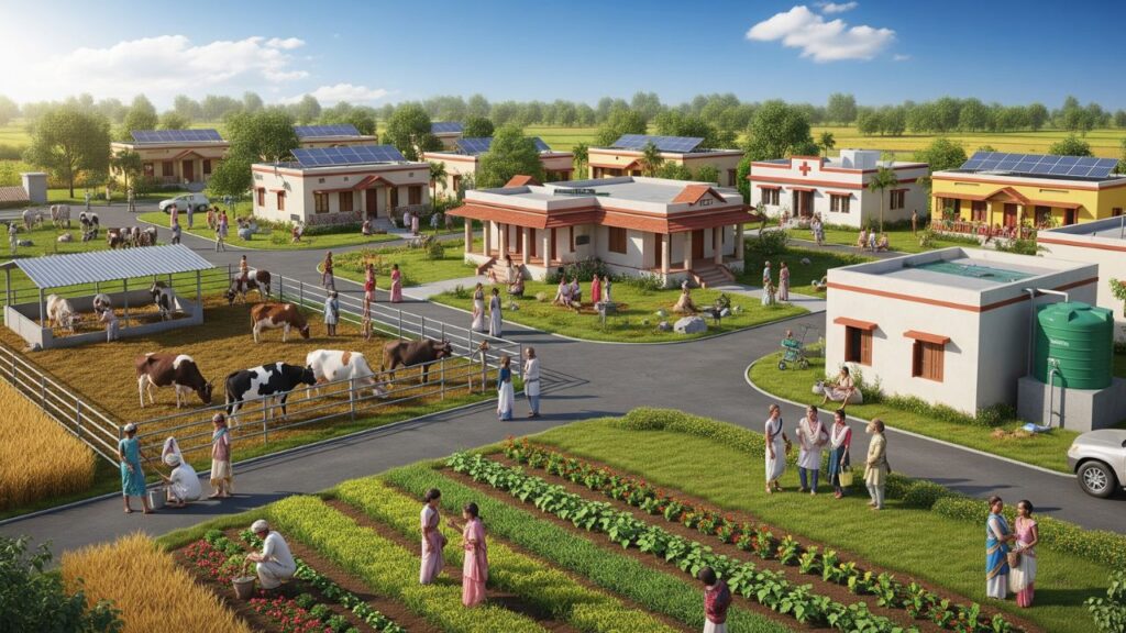 - आवासन और बुनियादी सुविधाएं: घर-घर जल, बिजली, शौचालय और सड़क जैसी सुविधाओं से गांवों की बुनियादी संरचना मजबूत होगी।